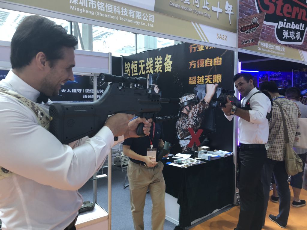銘恒攜線下真人吃雞裝備、真人CS裝備及激光打靶設備參加2018年9月12至14日廣州電子游戲國際產業展,本次展會主題為游藝設備、VR設備、AR設備,公園娛樂設備、室內外娛樂設備展,展會共設8個展館,規模宏大,參展廠商眾多。來觀展的各地娛樂場所經營者及國際客商云集,銘恒的激光真人CS裝備,線下吃雞裝備及激光射擊打靶設備引起了國內外客戶的高度關注,客商們駐足銘恒展位試用真人吃雞裝備,真人CS裝備及體驗激光打靶設備,并現場簽下多個訂單,公司將繼續跟蹤服務展會上咨詢過的海內外客戶,為客戶提供長期服務,取得更好的影響力!并在此感謝展會舉辦方GTI公司的熱情支持!